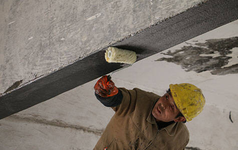 2018-09-06 15:35:51Before FRP composite strengthening, please reconfirm whether the concrete repair surface is clean and no foreign matter. After confirmation, make sure that the bottom glue is evenly applied on the top and bottom glue, otherwise there will be bubbles in the later carbon fiber composite materials.